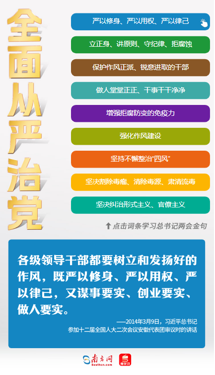 全面從嚴(yán)治黨,是習(xí)近平總書記一直以來都非常重視的話題。他站在戰(zhàn)略和全局的高度,以高遠(yuǎn)的歷史眼光看待全面從嚴(yán)治黨、堅(jiān)定不移推進(jìn)反腐敗斗爭。