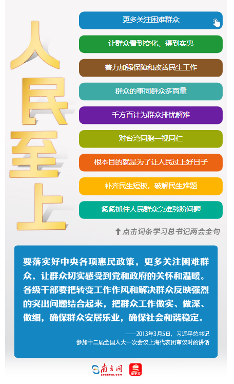 參加代表團(tuán)審議,習(xí)近平總書記常常跟代表們提及民生工作、民生保障、民生改善等話題。“人民”二字在他心中分量最重。正如他所說,“黨團(tuán)結(jié)帶領(lǐng)人民進(jìn)行革命、建設(shè)、改革,根本目的就是為了讓人民過上好日子,無論面臨多大挑戰(zhàn)和壓力,無論付出多大犧牲和代價(jià),這一點(diǎn)都始終不渝、毫不動搖。”