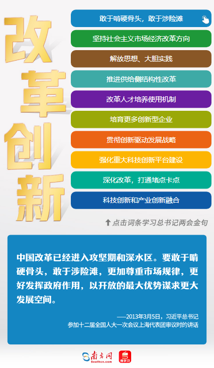 “改革”“創(chuàng)新”是習(xí)近平總書記與代表們常常提及的熱詞。