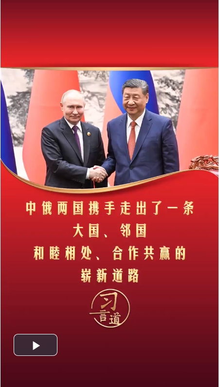 習(xí)言道丨中俄兩國(guó)攜手走出了一條大國(guó)、鄰國(guó)和睦相處、合作共贏的嶄新道路
