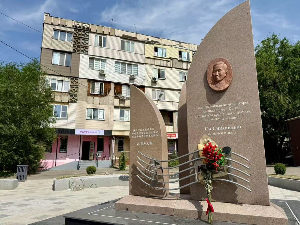 6月10日,在阿拉木圖拍攝的冼星海紀(jì)念碑。新華社記者 鄭開君 攝
