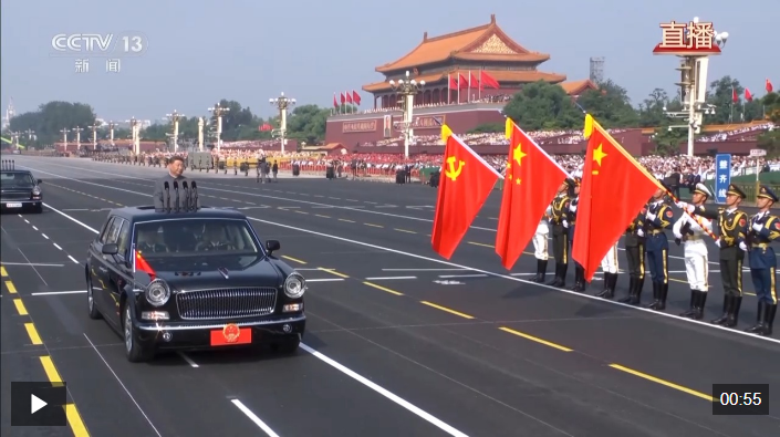 偉大旗幟光耀千秋。中國共產(chǎn)黨黨旗、中華人民共和國國旗、中國人民解放軍軍旗在受閱部隊最前方迎風招展。檢閱車行進至黨旗、國旗、軍旗前,敬禮號角響起,習近平停車肅立,以注目禮向三面旗幟莊嚴致敬。 yhF安康新聞網(wǎng)