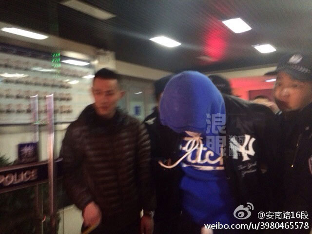 李代沫戴手銬離開派出所 被移送至朝陽分局