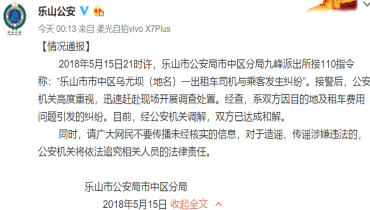 人民網(wǎng)北京5月16日電 (孝金波、楊思萱)近日,關(guān)于“一名樂(lè)山出租車(chē)司機(jī)故意將女乘客往烏尤壩黑暗的偏僻處拉”的小視頻在網(wǎng)上流傳。據(jù)樂(lè)山警方……