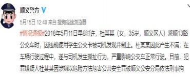 人民網(wǎng)北京5月16日電 (記者孝金波)5月11日,一位35歲女子試圖用學(xué)生公交卡乘車(chē)被制止,在車(chē)輛行駛過(guò)程中,其與司機(jī)發(fā)生撕扯,后被警方依法……