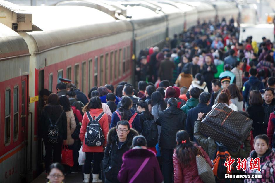 2月23日,山西太原火車站,民眾正在排隊等待乘車。隨著農歷春節(jié)“大年”結束,中國鐵路迎來客流高峰。中國鐵路總公司預計,當日中國鐵路發(fā)送旅客925萬人次。 張……