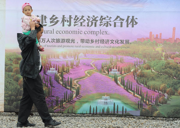 10月22日,重慶市渝北區(qū)興隆鎮(zhèn),當(dāng)?shù)卮迕駧е『⒃诘旎鶅x式現(xiàn)場參觀效果圖。當(dāng)日,重慶“五谷地意大利休閑度假農(nóng)場”正式破土動工。該項(xiàng)目按照意大利風(fēng)格設(shè)計(jì),……