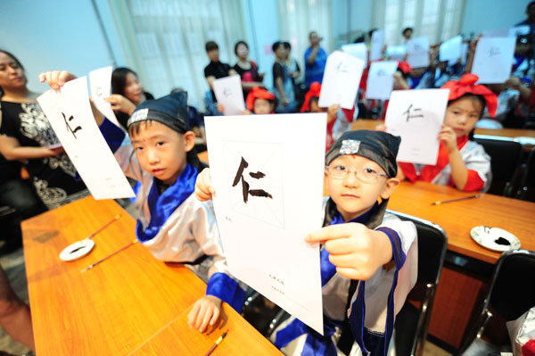 8月28日,天津市河西區(qū)馬場道小學(xué)的一年級(jí)新生在天津文廟開筆典禮上“擊鼓鳴志”。新學(xué)期伊始,天津市河西區(qū)馬場道小學(xué)的92名一年級(jí)新生身穿古典服飾,在天津文廟……