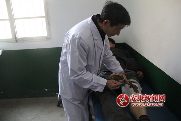 肖明國在給類風(fēng)濕關(guān)節(jié)炎患者涂抹草藥