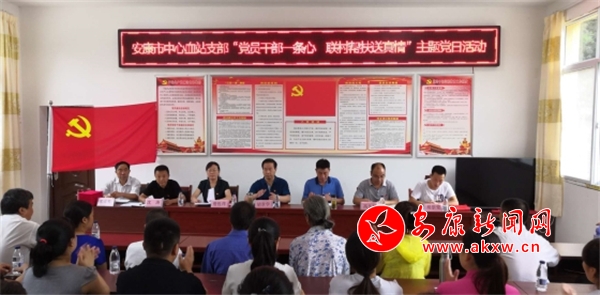 安康新聞網(wǎng)訊(通訊員 鄧娟)為認(rèn)真貫徹市委組織部關(guān)于在基層黨員中開展習(xí)近平新時(shí)代中國(guó)特色社會(huì)主義思想大學(xué)習(xí)大培訓(xùn)的工作要求,積極開展“黨員領(lǐng)導(dǎo)干部送黨課到基層”活動(dòng),7月17日上午,安康市中心血站黨支部書記、站長(zhǎng)胡章學(xué)帶領(lǐng)血站黨員、各科主任前往結(jié)對(duì)幫扶貧困村——旬陽(yáng)縣麻坪鎮(zhèn)老莊溝村開展“黨員干部一條心,聯(lián)村幫扶送真情”主題黨日活動(dòng)。