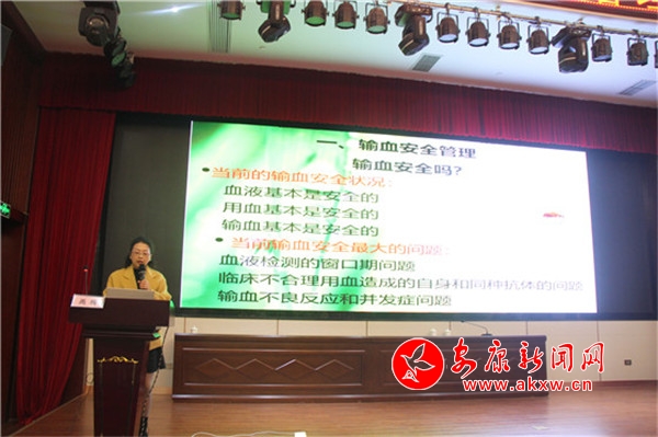 本次培訓(xùn)特別邀請了西安交通大學(xué)第一附屬醫(yī)院輸血科主任王寶燕教授,她結(jié)合自身多年工作經(jīng)驗,就《臨床輸血流程管理和臨床案例分析》進行了深入細致的講解。安康市中心醫(yī)院輸血科禹梅老師從血液管理、成分血的輸注、評估等方面做了《臨床輸血實踐與控制》的精彩闡述。安康市中心血站副站長李宏就近年來全市臨床輸血質(zhì)量管理專項督查中存在的問題進行了一一剖析,通報了各臨床用血單位無償獻血募集指標(biāo)完成的情況。