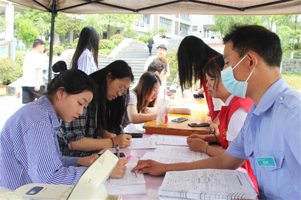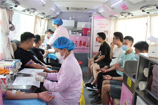 現(xiàn)場(chǎng)除了積極獻(xiàn)血的同學(xué),參與服務(wù)的志愿者們也非常熱情,他們細(xì)心地指導(dǎo)同學(xué)填寫體檢表,為獻(xiàn)血者倒水,發(fā)放紀(jì)念品,向前來咨詢的同學(xué)宣傳無償獻(xiàn)血,不少人也在輪換休息后走上獻(xiàn)血車伸出手臂勇敢獻(xiàn)血。