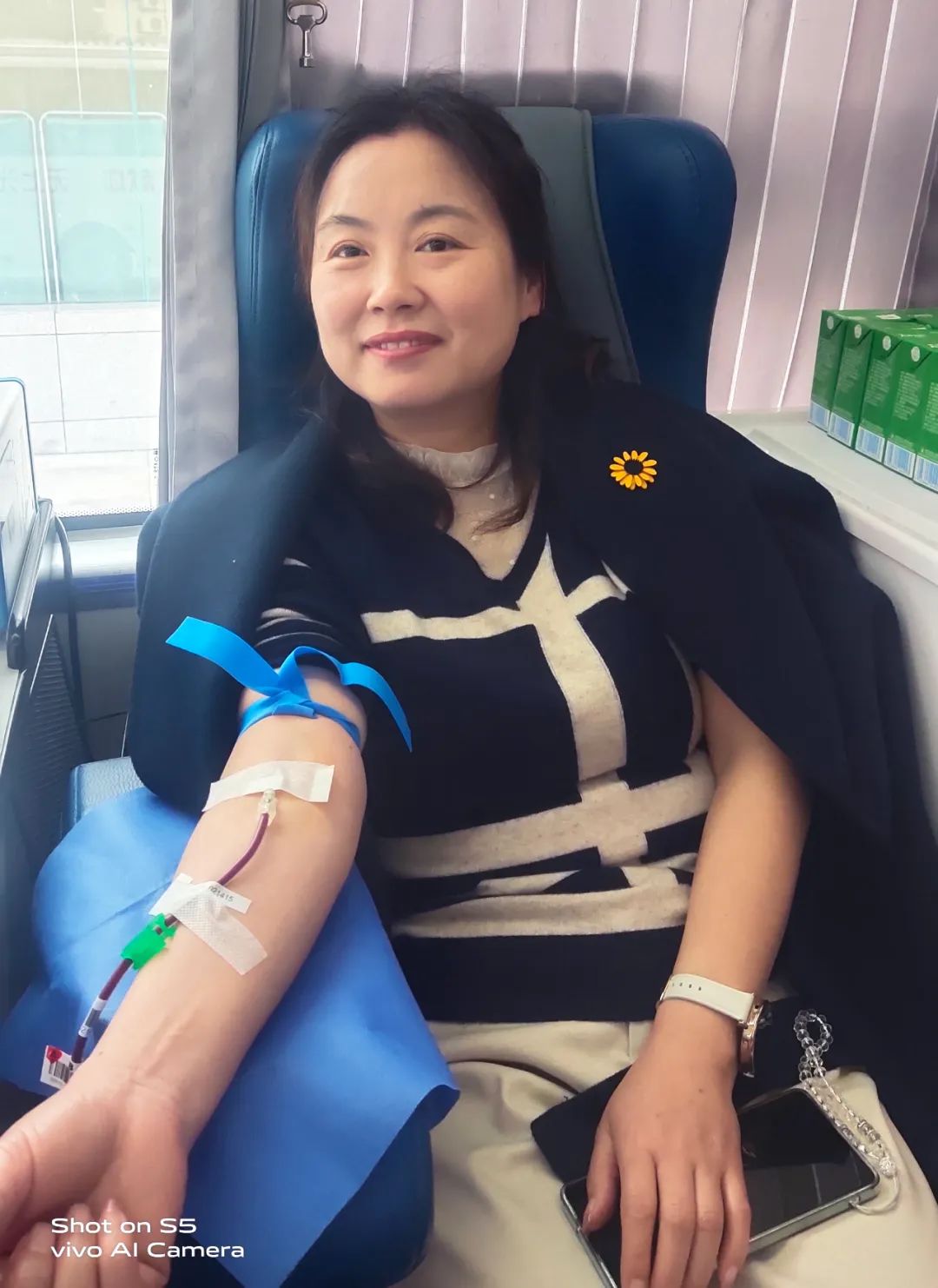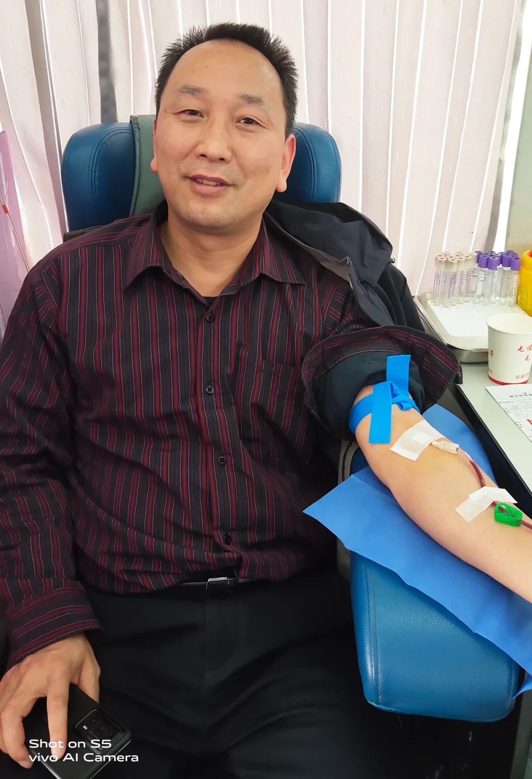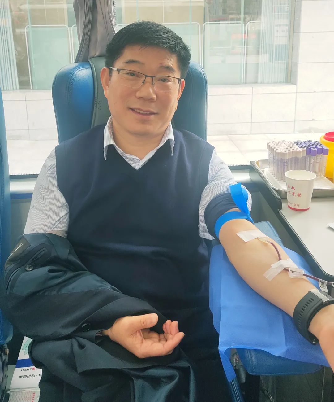 黨辦主任李子梅笑著說:“我一直想獻血,前幾次因為身體原因沒有獻成,還特別遺憾,這次檢測符合獻血標準后我特別高興,作為醫(yī)務工作者,能夠為無償獻血事業(yè)貢獻自己一份微薄的力量,這很有意義。”