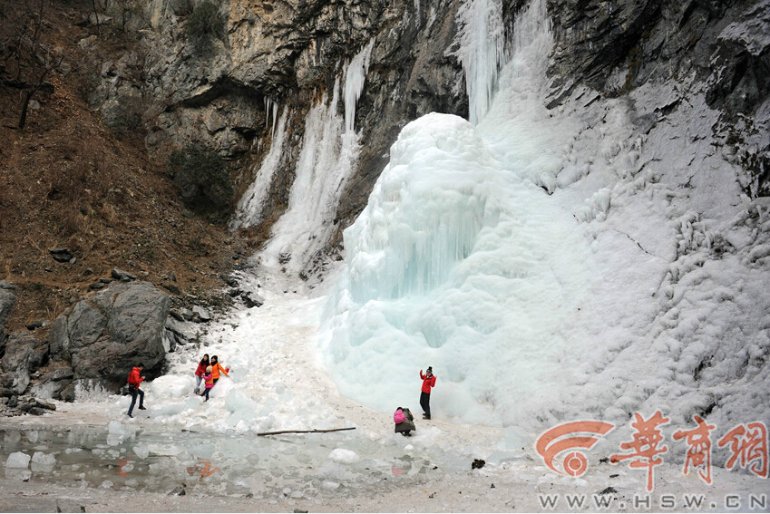 在附近西成高鐵施工的孫師傅說,2014年12月中旬,瀑布才開始結(jié)冰,每天都會(huì)吸引數(shù)百名游客來此參觀。瀑布結(jié)冰后,早晨比較結(jié)實(shí),但上午太陽出來后,冰瀑頂部的冰層開始融化,下午一兩點(diǎn),是冰柱或冰碴掉落的高峰期。“前兩天還有冰碴掉下來把人砸了,但情況不嚴(yán)重。”孫師傅說。