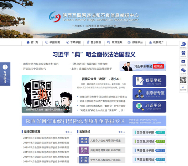 陜西省網(wǎng)絡(luò)舉報中心官網(wǎng)“陜西互聯(lián)網(wǎng)違法和不良信息舉報中心”網(wǎng)站上線于2017年2月5日,主要功能是開展網(wǎng)絡(luò)舉報工作宣傳,受理網(wǎng)民對網(wǎng)絡(luò)違法和不良信息舉報,開展針對網(wǎng)絡(luò)謠言的識謠辟謠工作,以及配合相關(guān)部門做好網(wǎng)絡(luò)輿情的正面引導(dǎo)。“陜西網(wǎng)絡(luò)聯(lián)合辟謠平臺”是陜西網(wǎng)絡(luò)辟謠聯(lián)盟的官方網(wǎng)站,上線于2017年7月28日,主要用于宣傳、受理和發(fā)布重要辟謠信息及公布相關(guān)工作數(shù)據(jù)。