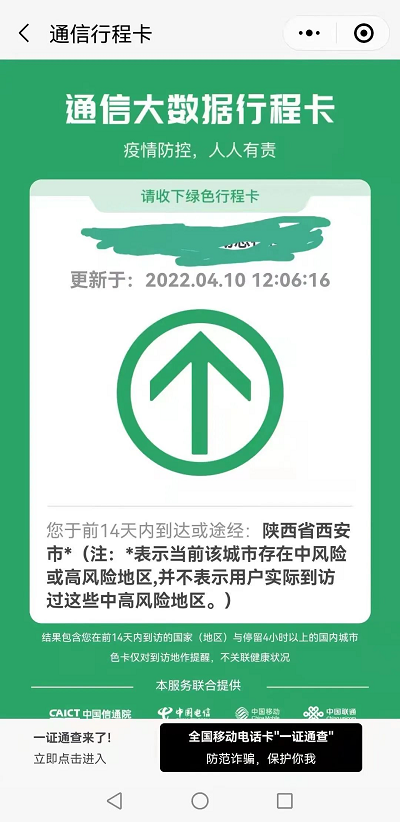 A:行程卡分析的是手機信令和話單數(shù)據(jù),因此有行程數(shù)據(jù)的前提是您在使用手機的過程中產(chǎn)生了這些數(shù)據(jù)。遇到查不到行程的問題,您可以嘗試多打幾通電話,或關閉Wi-Fi連接使用一下4G流量,通常第二天就能查到數(shù)據(jù)了。為了避免因相鄰城市基站覆蓋造成的位置偏差,行程卡設置了滿足4小時為駐留的判斷條件,所以,在一天內(nèi),最早-最晚的通話或流量使用記錄時間跨度需要超過4小時(比如早上7點一次,中午12點一次),才能滿足要求。