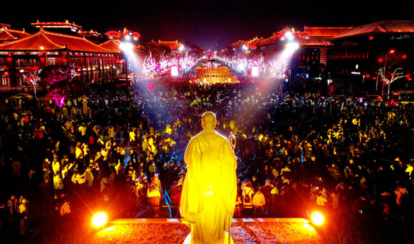 大唐不夜城位于西安大雁塔腳下,南北總長(zhǎng)2100米,東西寬500米。在唐代,這里曾是大唐高僧玄奘的譯經(jīng)之處,眾多文人騷客也曾在這里賦詩(shī)抒懷,新科進(jìn)士更把“雁塔題名”視為莫大榮耀。