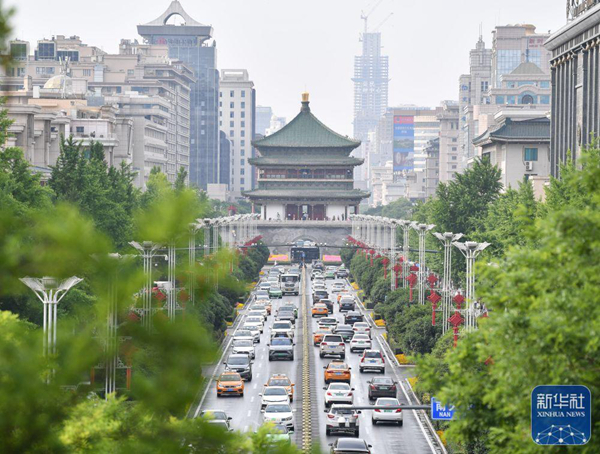 ↑這是5月15日拍攝的西安鐘樓。新華社記者 張博文 攝