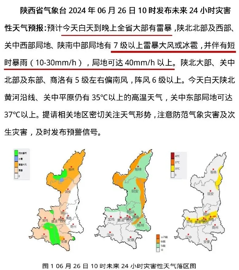 陜北大部、關(guān)中北部及東部、商洛有5級左右偏南風,陣風6級以上。今天白天陜北黃河沿線、關(guān)中平原仍有35℃以上的高溫天氣,關(guān)中東部局地可達37℃以上。提請相關(guān)地區(qū)密切關(guān)注天氣形勢,注意防范氣象災害及次生災害,及時發(fā)布預警信號。