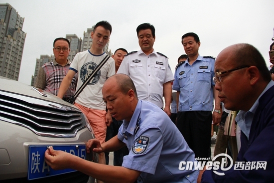 圖注:西安市車管所民警為第200萬(wàn)輛機(jī)動(dòng)車掛牌西部網(wǎng)訊(記者 孫鵬) 截止7月3日,西安市全市機(jī)動(dòng)車保用量突破200萬(wàn)輛大關(guān)。上午10時(shí)左右,交管部門(mén)在車管所舉行“第……