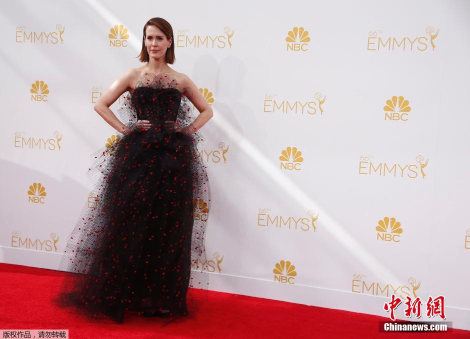 當(dāng)?shù)貢r間2014年8月25日,美國洛杉磯,第66屆美國電視艾美獎頒獎典禮舉行,眾星走上紅毯。圖為《美國恐怖故事》女星莎拉保羅森黑紗裙現(xiàn)身。v6G安康新聞網(wǎng)