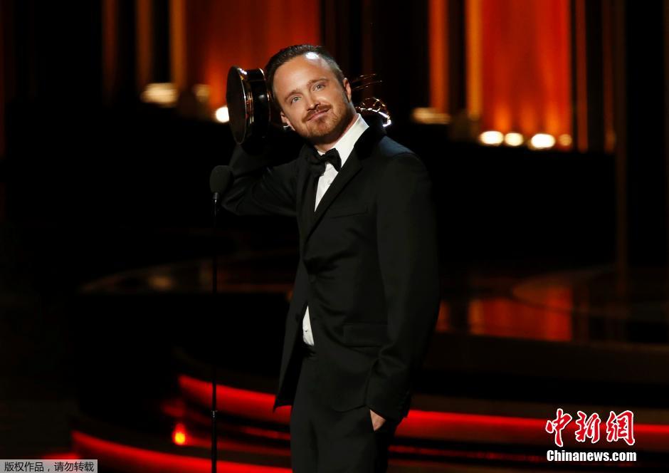 當(dāng)?shù)貢r(shí)間2014年8月25日,第66屆美國(guó)電視艾美獎(jiǎng)?lì)C獎(jiǎng)典禮在洛杉磯舉行,《絕命毒師》的小粉亞倫·保爾 (Aaron Paul),擊敗權(quán)力的游戲的小惡魔等一眾競(jìng)爭(zhēng)對(duì)手,獲得了2014艾美獎(jiǎng)劇集類(lèi)最佳男配角獎(jiǎng)項(xiàng)。小粉在致辭時(shí)扭來(lái)扭去,激動(dòng)的語(yǔ)無(wú)倫次,并著重感謝了老白。這是他第三次獲得艾美獎(jiǎng)!