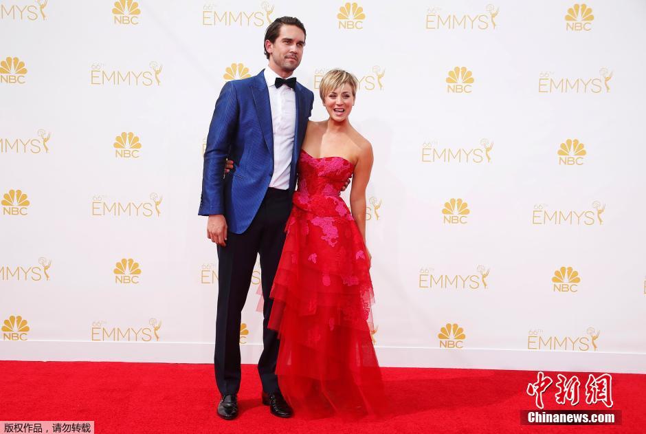 當(dāng)?shù)貢r(shí)間2014年8月25日,美國(guó)洛杉磯,第66屆美國(guó)電視艾美獎(jiǎng)?lì)C獎(jiǎng)典禮舉行,眾星走上紅毯。圖為《生活大爆炸》女星卡蕾攜網(wǎng)球運(yùn)動(dòng)員老公現(xiàn)身。v6G安康新聞網(wǎng)