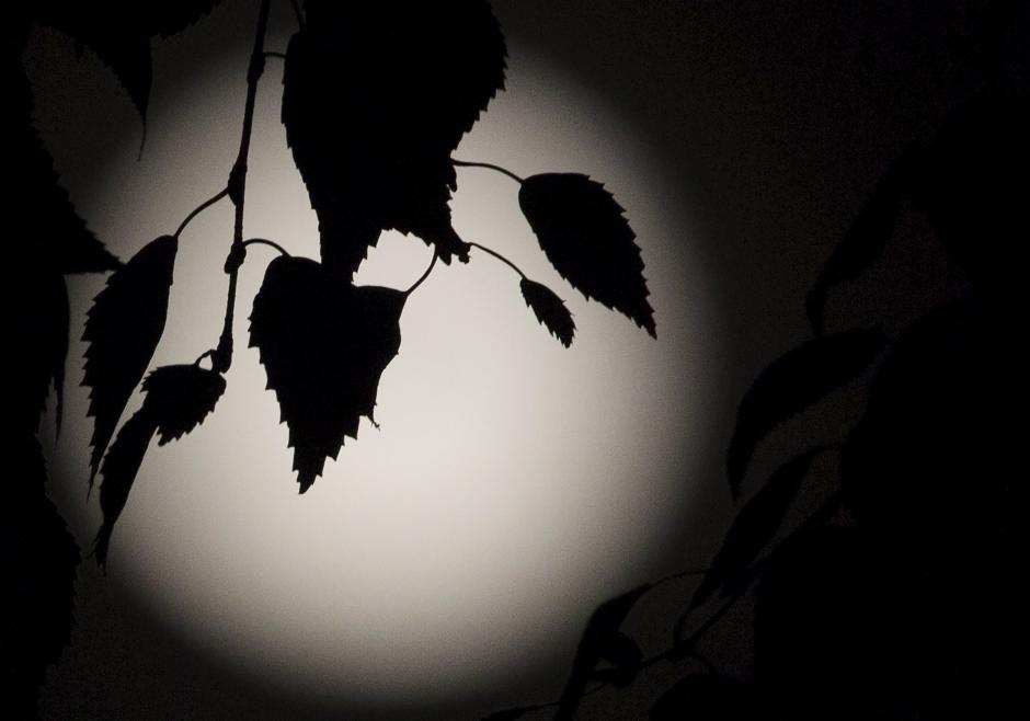 英國倫敦北部,滿月中呈現(xiàn)葉子黑色的輪廓。