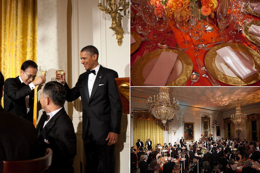 美國白宮2011年10月13日迎來了韓國總統(tǒng)李明博的訪問。當天晚上,奧巴馬設(shè)國宴款待李明博。白宮官網(wǎng)在介紹國宴菜品時說,當晚的菜品是當?shù)刈詈玫氖巢暮晚n國傳統(tǒng)風味結(jié)合的成果。