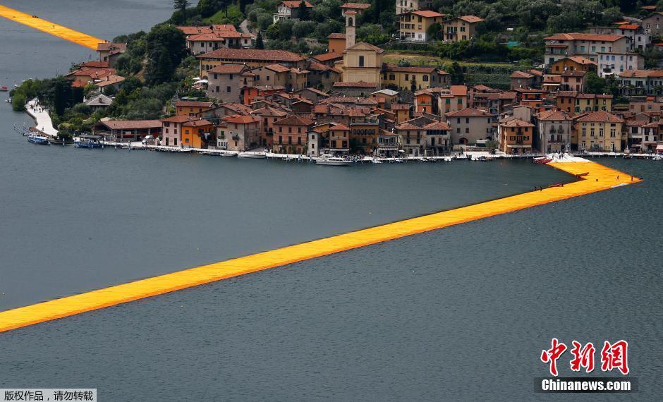 意大利湖面建“黃金大道” 直通湖心島