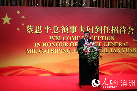蔡思平在致辭中表示,今年是中澳建交45周年,中澳關(guān)系正處于重要的發(fā)展時(shí)期,在此時(shí)履任中國駐阿德萊德總領(lǐng)事,既感到非常榮幸,又深知使命光榮,責(zé)任重大。