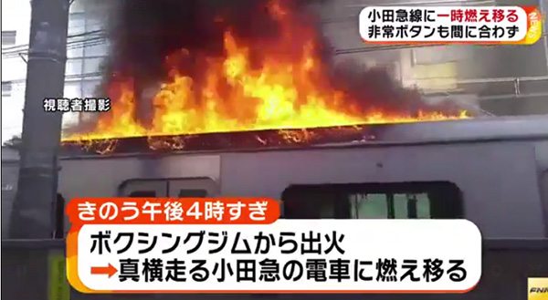昨天下午4時(shí)多,澀谷區(qū)代代木的拳擊體育館突然發(fā)生大火,并將從這里路過的小田急小田原線開往新宿的一列電車引燃,大約300名乘客緊急下車避難,不過幸好沒有出現(xiàn)傷亡情況。