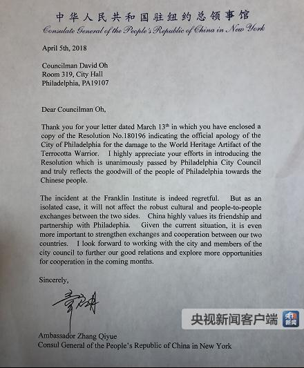 目前,該作案男子被逮捕后保釋,正在等待法庭的審判,面臨最高可達(dá)有期徒刑30年的判決。而另一方面,費(fèi)城市政府在日前通過了一份決議,正式向中方進(jìn)行書面道歉。
