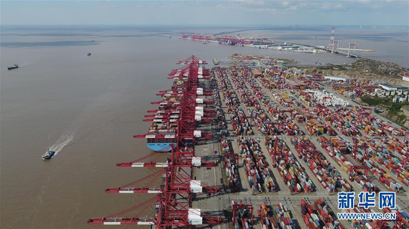 這是無(wú)人機(jī)拍攝的上海洋山港集裝箱碼頭(11月1日攝)。新華社記者 丁汀 攝