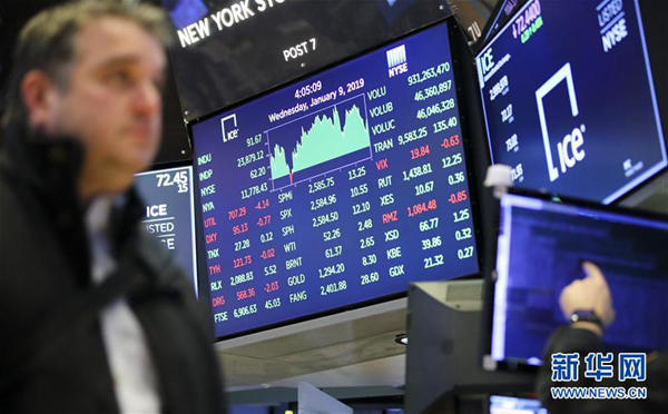 1月9日,美國紐約證券交易所的電子屏顯示當(dāng)日交易行情。 紐約股市三大股指9日上漲。截至當(dāng)天收盤,道瓊斯工業(yè)平均指數(shù)比前一交易日上漲91.67點(diǎn),收于23879.12點(diǎn),漲幅為0.39%。標(biāo)準(zhǔn)普爾500種股票指數(shù)上漲10.55點(diǎn),收于2584.96點(diǎn),漲幅為0.41%。納斯達(dá)克綜合指數(shù)上漲60.08點(diǎn),收于6957.08點(diǎn),漲幅為0.87%。 新華社記者 王迎 攝