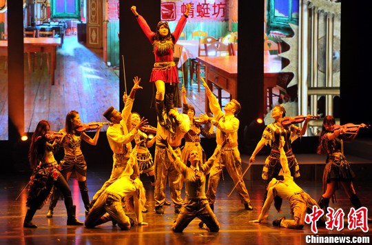 9日上午,2014年中國國際演出交易會開幕式首演劇目《蜻蜓坊》在江西藝術中心上演。劉占昆 攝