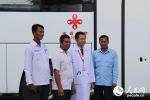 頌薩彌醫(yī)生與同事們?cè)诹鲃?dòng)診所前合影。記者張志文攝 5月10日上午,中國(guó)援助柬埔寨流動(dòng)診所交接儀式在金邊舉行。首批20輛印有兩國(guó)國(guó)旗圖案和“中……