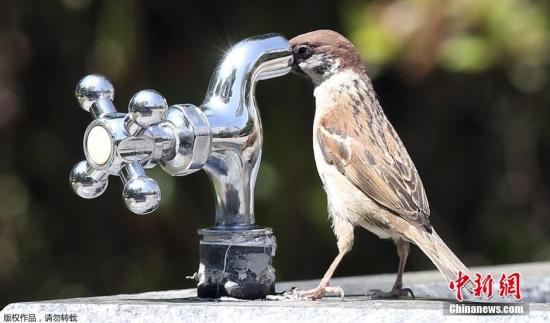 當(dāng)?shù)貢r間2015年5月26日,韓國氣象局發(fā)布了本年度首個熱浪警報,稱在未來幾日,氣溫或升至33攝氏度。首爾街頭一只小鳥試圖把頭探進(jìn)水龍頭里喝水。中新網(wǎng)6月25日電……