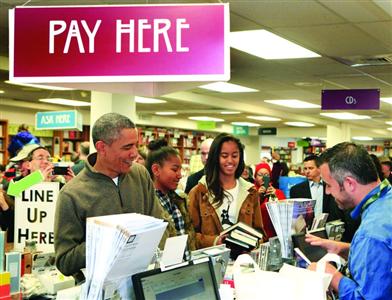 奧巴馬攜女光顧書店 意外遭顧客“質(zhì)問”(圖)