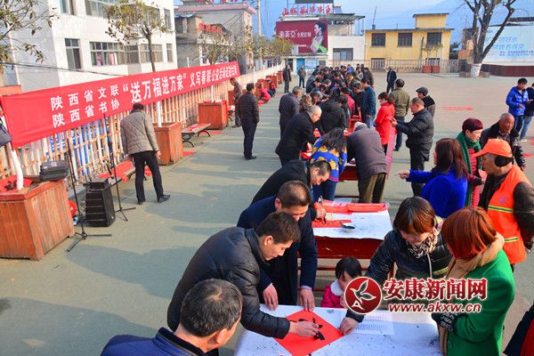 安康新聞網(wǎng)訊(通訊員 吳磊 郎海俠)1月23日,由陜西省文聯(lián)、陜西省書協(xié)組織的“送萬福進(jìn)萬家”義寫春聯(lián)公益活動在縣體育場舉行,省書協(xié)副主席史星文、吳福春、劉偉群等數(shù)十位省、市書法家參加義寫活動。縣委常委、宣傳部長魯延福出席活動并致辭。