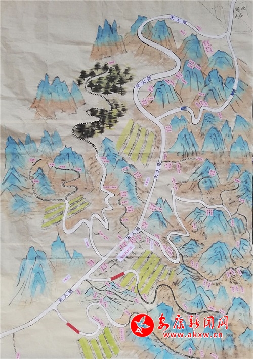 在一張大白紙上,左士霆用鉛筆勾勒出安樂(lè)村的主要地形和道路。夜深人靜時(shí),他又一戶(hù)戶(hù)標(biāo)記出當(dāng)天走訪的貧困戶(hù)住址。駐村以來(lái),他走遍了安樂(lè)村的溝溝壑壑,將村里主要路線、地勢(shì)地形、貧困戶(hù)的居住點(diǎn)勾勒連接成片,繪制成“地圖”,整個(gè)村情一目了然。