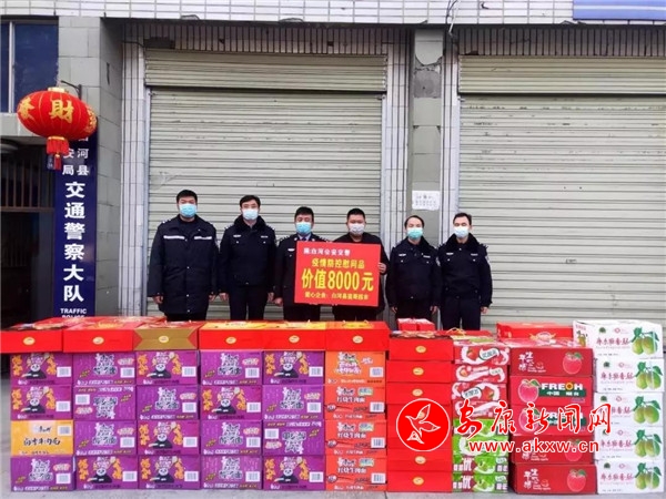 “看到你們公安交警為防控疫情,不畏寒冷,辛苦的工作我非常感動,作為一名共產(chǎn)黨員、一個企業(yè)家、一個公民,我也有義務(wù)盡一份社會責(zé)任。”2月8日下午,白河縣蠻哥南嶺子大眾超市將價值8000余元的水果、面包、牛奶等物資送到白河縣公安局交警大隊,用濃濃的真誠厚意慰問戰(zhàn)斗在防控一線的公安干警。