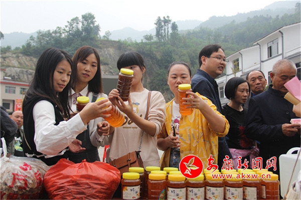 據(jù)悉,此次豐收節(jié)活動(dòng)以“文旅消費(fèi)助扶貧”為主題,共在東坡村文化中心廣場(chǎng)設(shè)置“山貨”及農(nóng)產(chǎn)品售賣展位近百個(gè)。據(jù)不完全統(tǒng)計(jì),活動(dòng)現(xiàn)場(chǎng)累計(jì)售出蜂蜜、酒、獼猴桃、菜籽油、干竹筍等“山貨”4000余斤,共計(jì)10萬(wàn)余元。