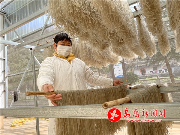 伴著明媚的春光,走進焦贊村的招牌企業(yè)--白河縣希望農(nóng)產(chǎn)品加工合作社,一桿桿紅薯粉條正在懸掛、晾曬、消凍。生產(chǎn)車間內(nèi)熱氣騰騰,六七名工人組成一條生產(chǎn)線,經(jīng)過打芡、撈粉、晾粉等多道工序,金燦燦的紅薯粉條便成型了。憑借著質(zhì)量過硬、口碑好,合作社生產(chǎn)的紅薯粉條和洋芋粉在市場上很走俏,并與西安電子科技大學(xué)和縣內(nèi)外學(xué)校企業(yè)達成了長期供貨協(xié)議。