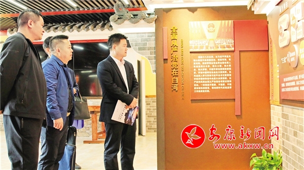 縣委常委、縣紀委書記、縣監(jiān)委代主任胡亞斌(右一)指導廉政文化建設工作,要求要進一步建好、管好、用好廉政文化示范點,充分發(fā)揮綜合功效。