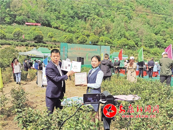 白河縣郵政公司將直播間搬進茶旅文化節(jié)主會場,直播推介白河茶葉文創(chuàng)產(chǎn)品。陳俊 攝