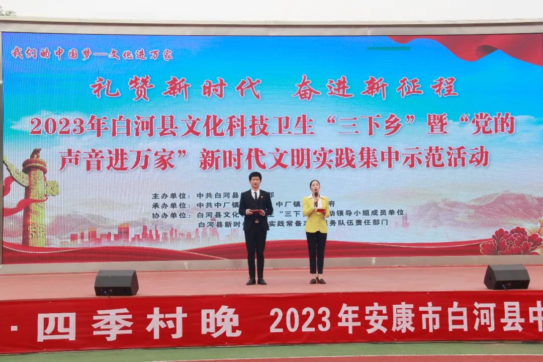 4月18日,白河縣2023年文化科技衛(wèi)生“三下鄉(xiāng)”暨“黨的聲音進萬家”新時代文明實踐集中示范活動走進中廠鎮(zhèn),把黨的創(chuàng)新理論和惠民政策送進千家萬戶,讓廣大群眾在家門口享受文化科技衛(wèi)生服務。Aax安康新聞網(wǎng)