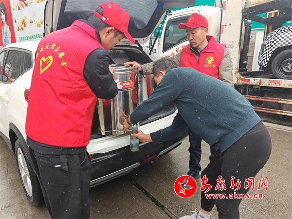 2月21日上午,降雪導(dǎo)致十天高速道路封閉,部分司機和乘客滯留在白河服務(wù)區(qū),陜西交控集團白泉分公司白河管理所組織青年志愿者為滯留司乘送去饅頭、雞蛋、姜湯等食物,讓滯留人員感受到了溫暖。(通訊員 張丹) eQt安康新聞網(wǎng)