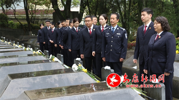 烈士陵園里,蒼松翠柏掩映著一塊塊莊嚴(yán)肅穆的墓碑,每一塊墓碑都記錄著一位烈士的英勇事跡和無(wú)私奉獻(xiàn)。全體干警整齊列隊(duì),肅立在烈士墓前,敬獻(xiàn)花圈,鞠躬默哀,悼念長(zhǎng)眠在這方熱土的烈士忠魂,寄托無(wú)盡的哀思和敬仰。