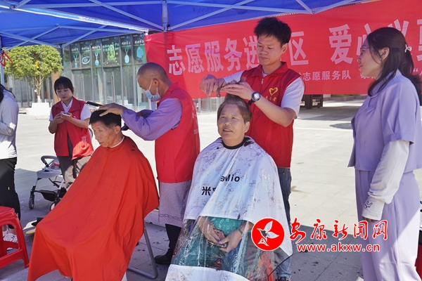 活動現場舉辦的“孝義善舉”主題書畫作品展,內容豐富、書體多樣,吸引了許多群眾前來觀看。最受老人歡迎的愛心義剪活動前,身穿紅馬甲的志愿者耐心熱情地詢問著老人的需求,為他們提供免費理發(fā)服務,看見鏡中煥然一新的發(fā)型,老人們臉上洋溢著滿意的笑容。